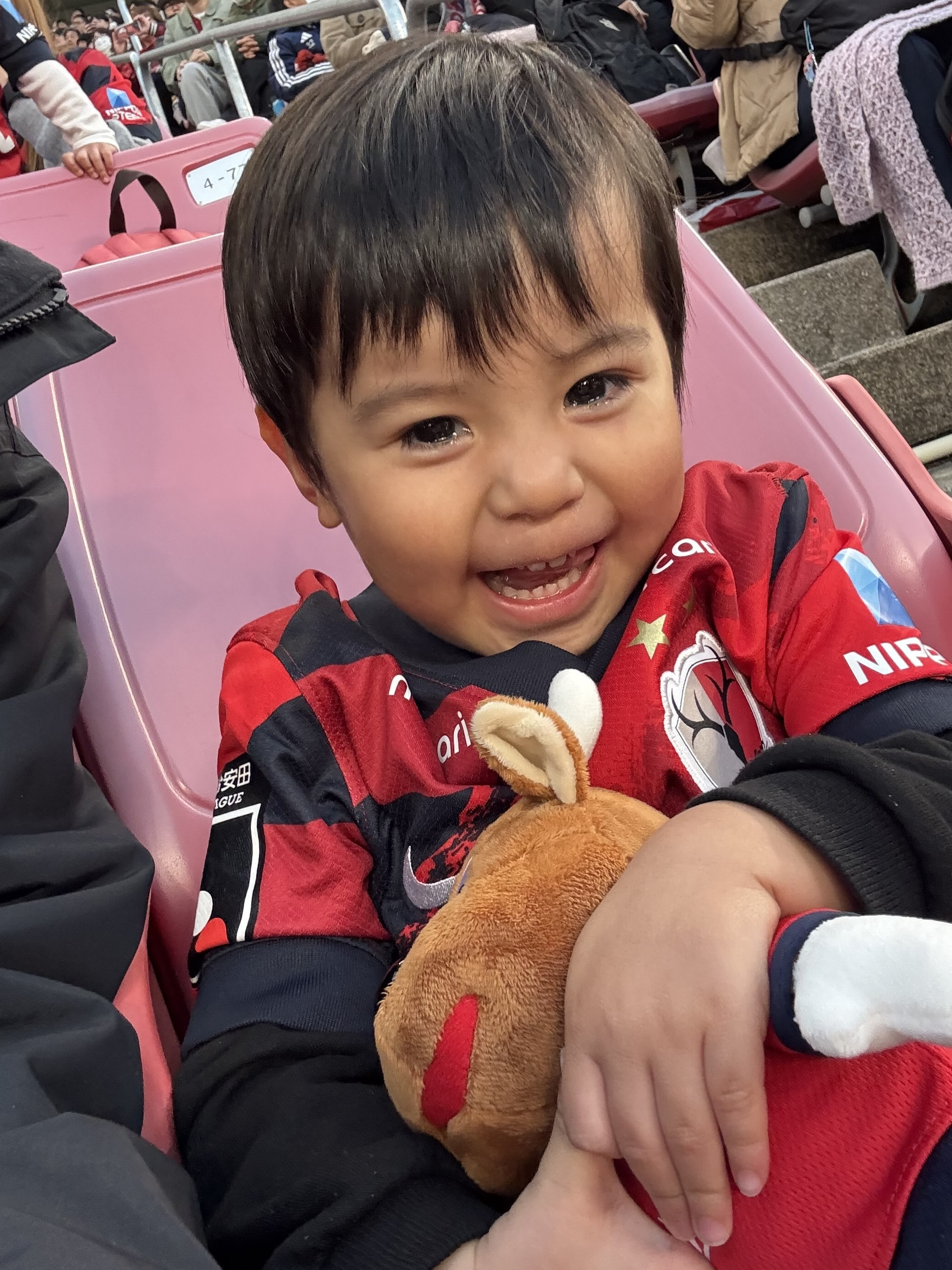 終了のホイッスル直後、次男を撮ったら涙を浮かべて喜んでました🥹(本当は長男にアントンのぬいぐるみ取られて泣いた後に取り返しただけですが笑)